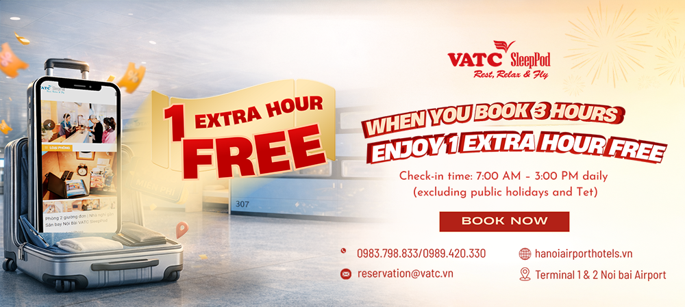 From now on, VATC SleepPod introduces a special promotion:Get 1 free resting hour when purchasing 3 hours, applicable during daytime hours, helping passengers optimize both resting time and travel costs.