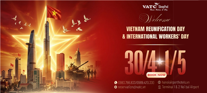 On the occasion of the Vietnam Reunification Day and International Workers’ Day holiday (April 30 – May 1), VATC SleepPod – Noi Bai Airport Hotel is offering a special promotion: Book 3 hours and get 1 extra hour free for passengers waiting for flights, transit travelers in Hanoi, and those with late-night or early morning flights.