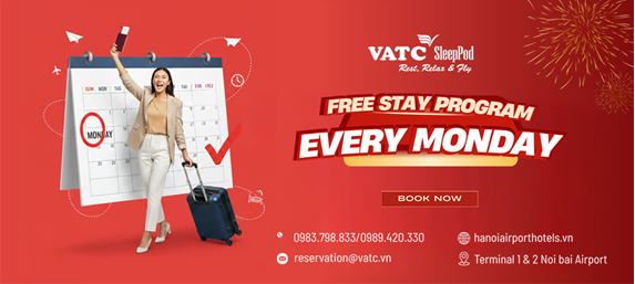 Welcoming the vibrant travel season, VATC SLEEPPOD Noi Bai Airport Hotel is excited to offer an amazing promotion – “VATC SleepPod Hotel – Free Stay Program Every Monday!”
