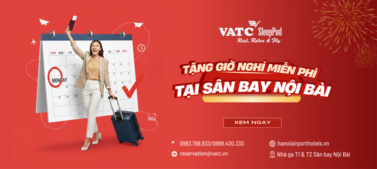 Từ nay, vào mỗi Thứ Hai hàng tuần, dịch vụ hộp ngủ VATC SleepPod áp dụng chương trình tặng 01 giờ nghỉ miễn phí tại dịch vụ phòng ngủ Sân bay dành cho hành khách có chuyến bay đến hoặc khởi hành ở Nội Bài. Thời gian sử dụng ưu đãi trong khung giờ từ 10:00 đến 13:00, giúp Quý khách thư giãn, nạp lại năng lượng trước khi tiếp tục hành trình.